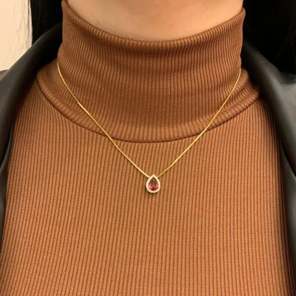 COLAR GOTA RUBI CRAVEJADO CRISTAL EM VOLTA