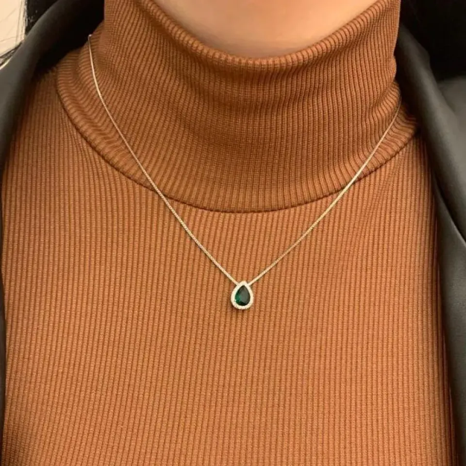 COLAR GOTA ESMERALDA CRAVEJADO CRISTAL EM VOLTA