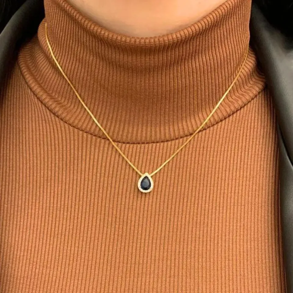 COLAR GOTA SAFIRA CRAVEJADO CRISTAL EM VOLTA