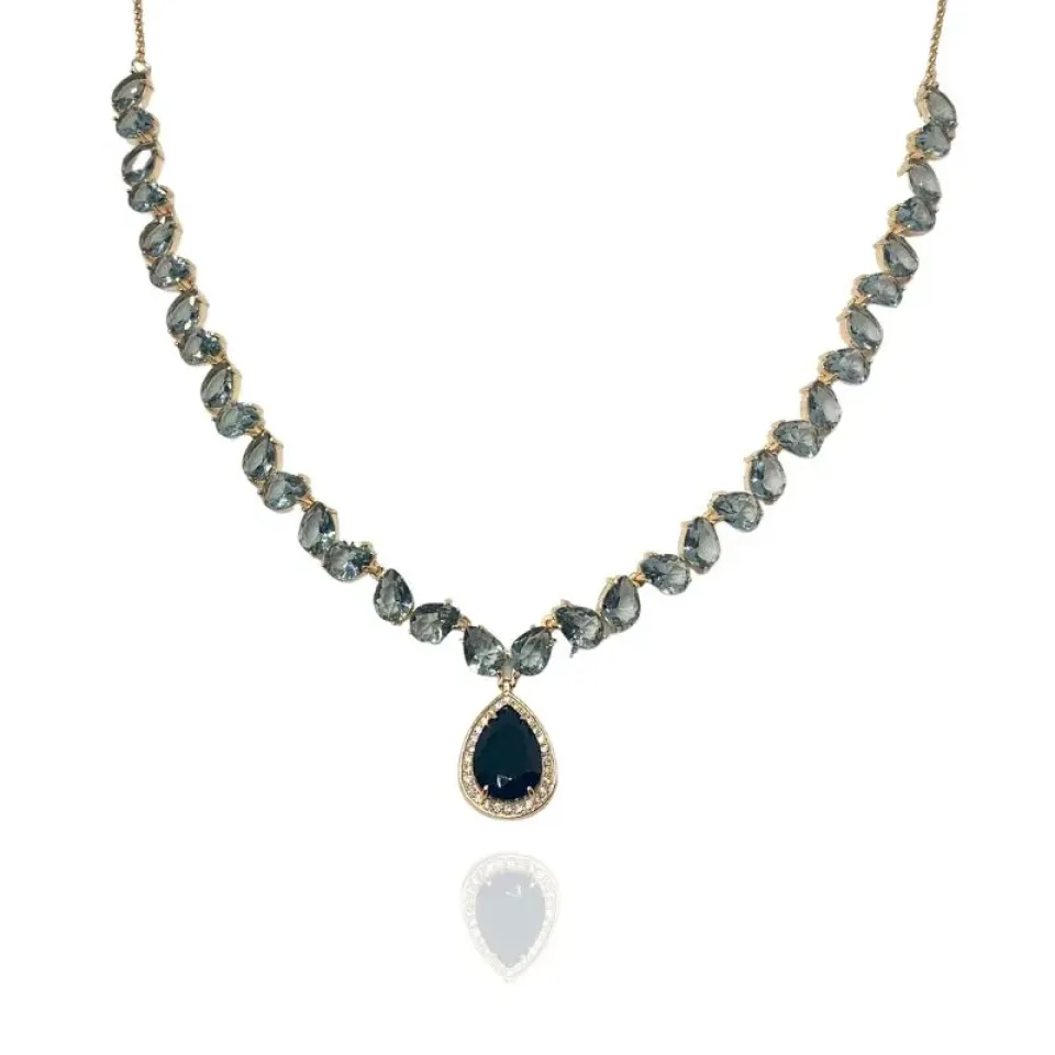 Colar festa gotas fume e gota preta cravejada de cristal em volta