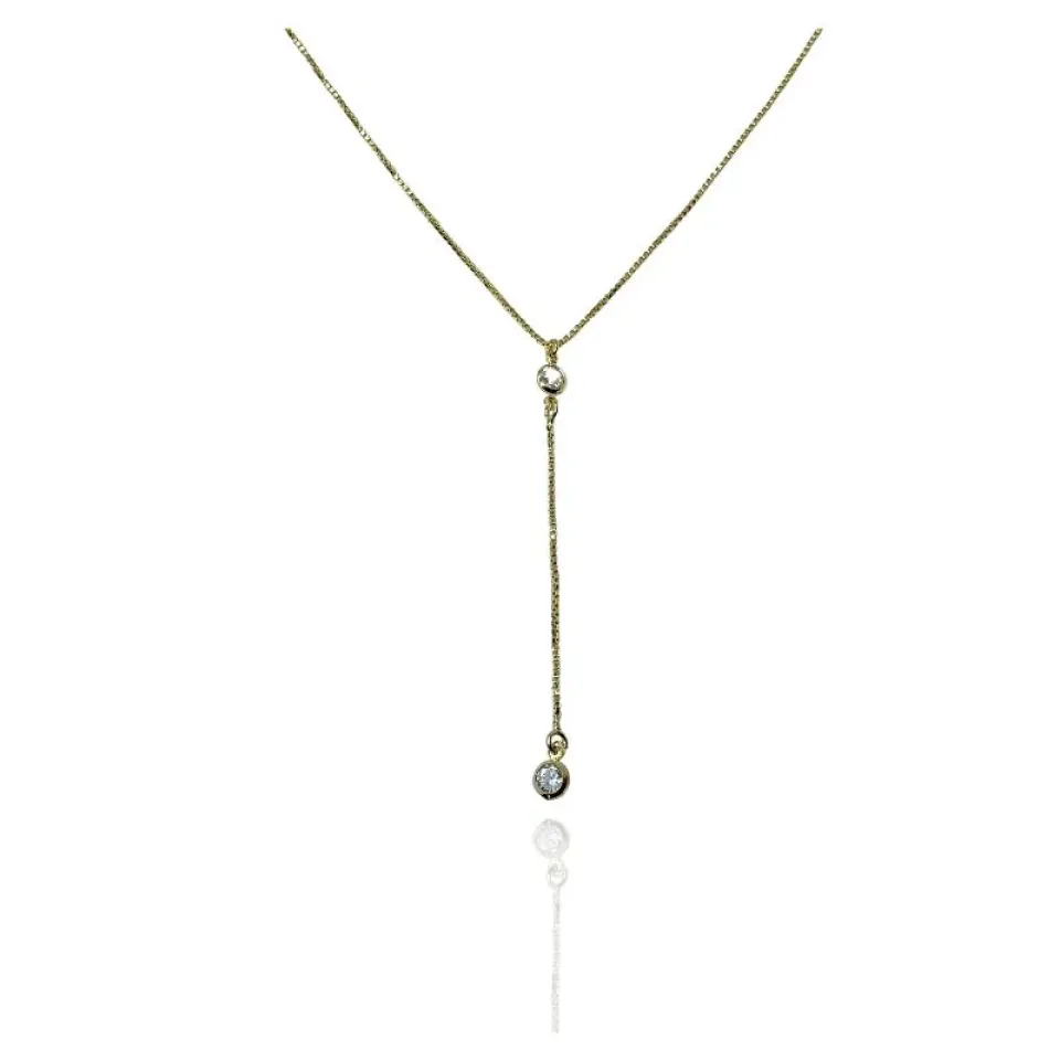 Colar cravatinha corrente veneziana e 2 zircônias cristais