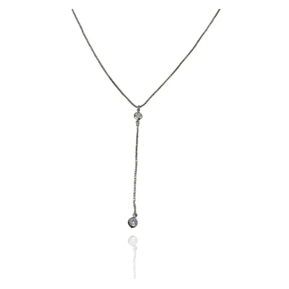 Colar cravatinha corrente veneziana e 2 zircônias cristais