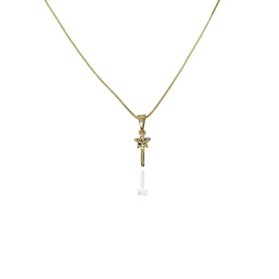 Colar infantil varinha mágica cravejada com zircônias coloridas