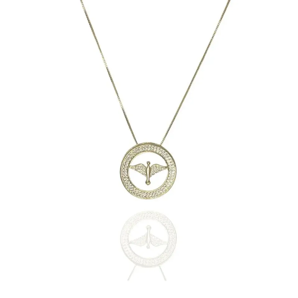Colar medalha Espírito Santo cravejada de zircônias cristais