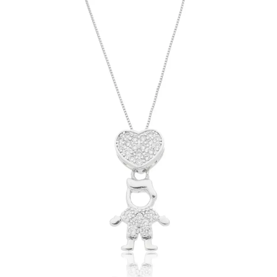 Colar filho coração cravejado e menininho cravejado.