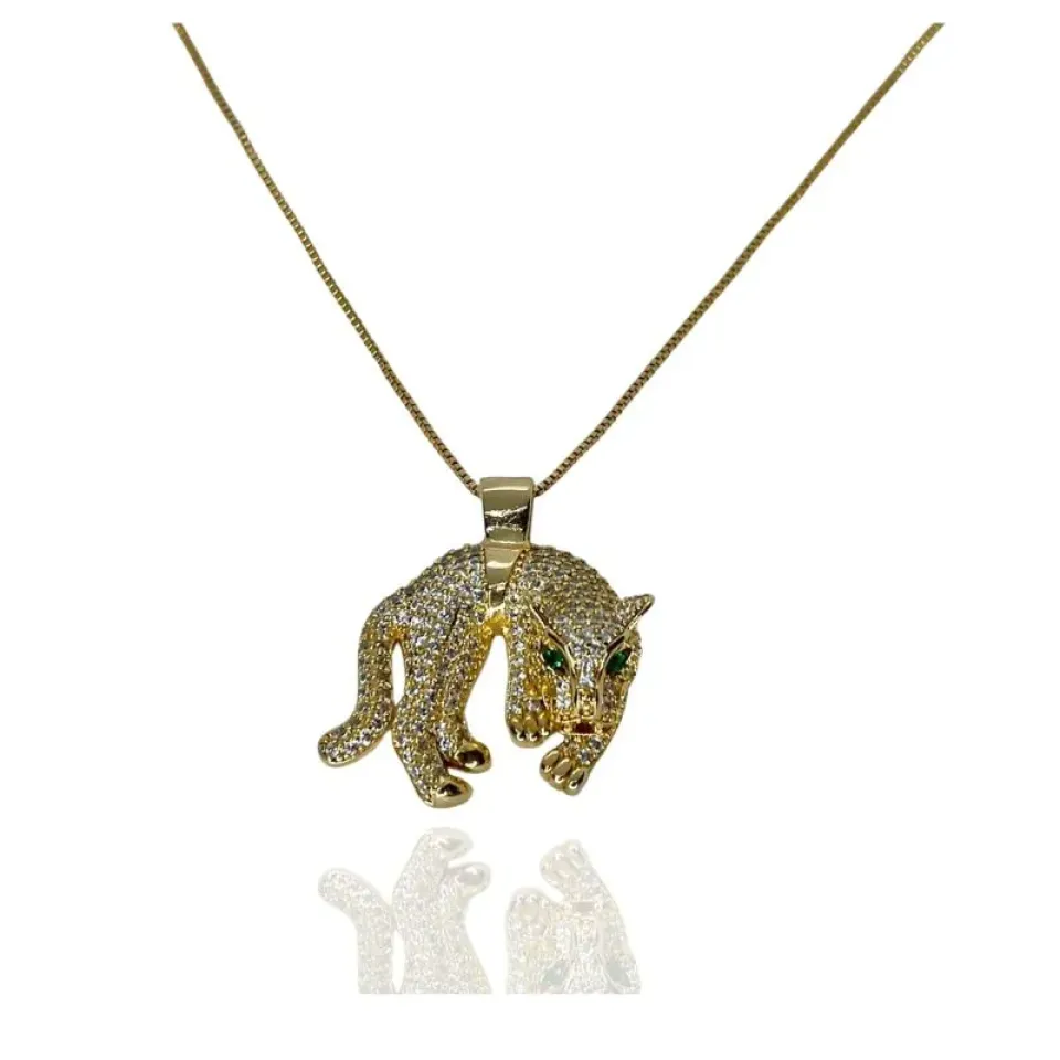 COLAR ONÇA CRAVEJADA OLHOS ESMERALDAConfira opiniões e avaliações de clientes!