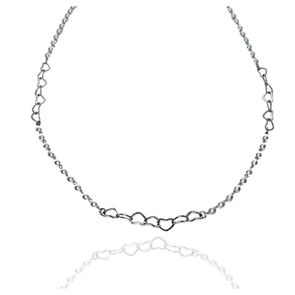Colar pérolas e corações vazados