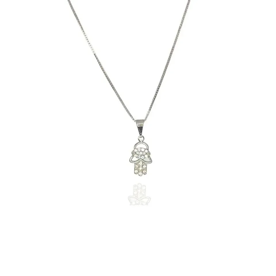 Colar com pingente Mão de Fátima cravejado cristal