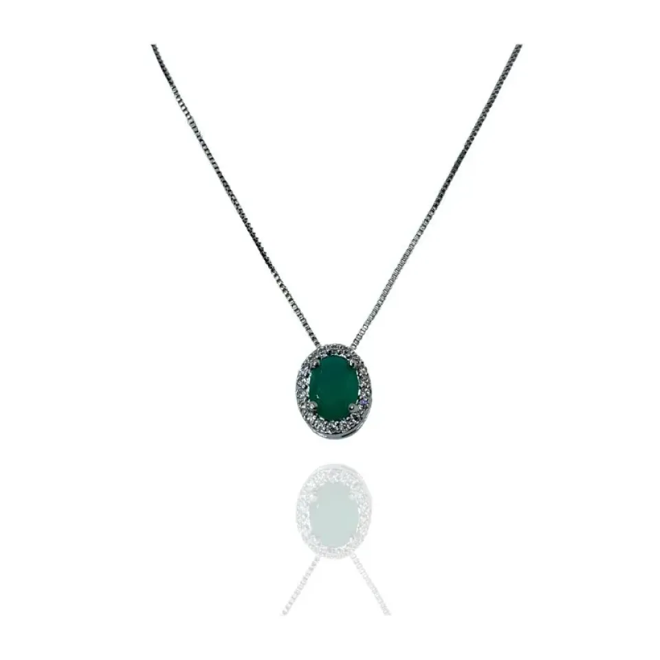 Colar pingente princesa oval zircônia verde esmeralda no meio e cravejado com zircônias cristais em volta