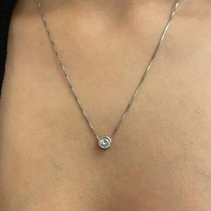 Colar ponto de luz com cravação inglesa zircônia cristal de 5mm