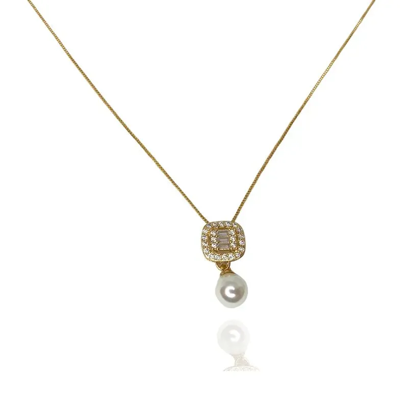 COLAR QUADRADO CRAVEJADO E PÉROLA PENDURADAConfira opiniões e avaliações de clientes!