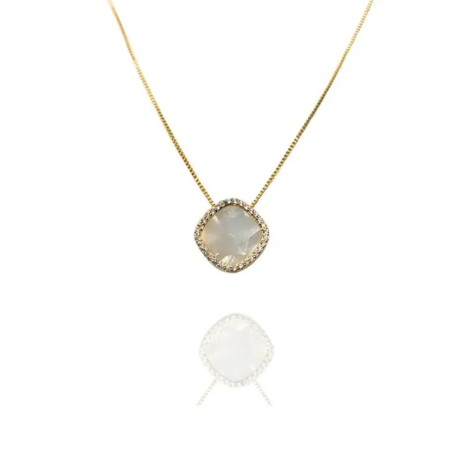 COLAR QUADRADO EM MADREPÉROLA CRAVEJADO EM VOLTAConfira opiniões e avaliações de clientes!