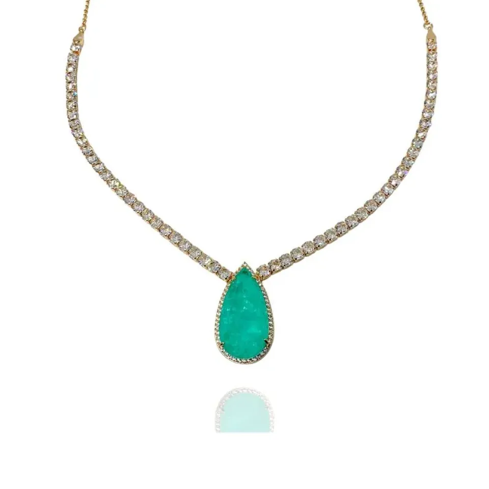 XColar riviera cristal com gota turmalina fusion cravejada com zircônias cristais em volta