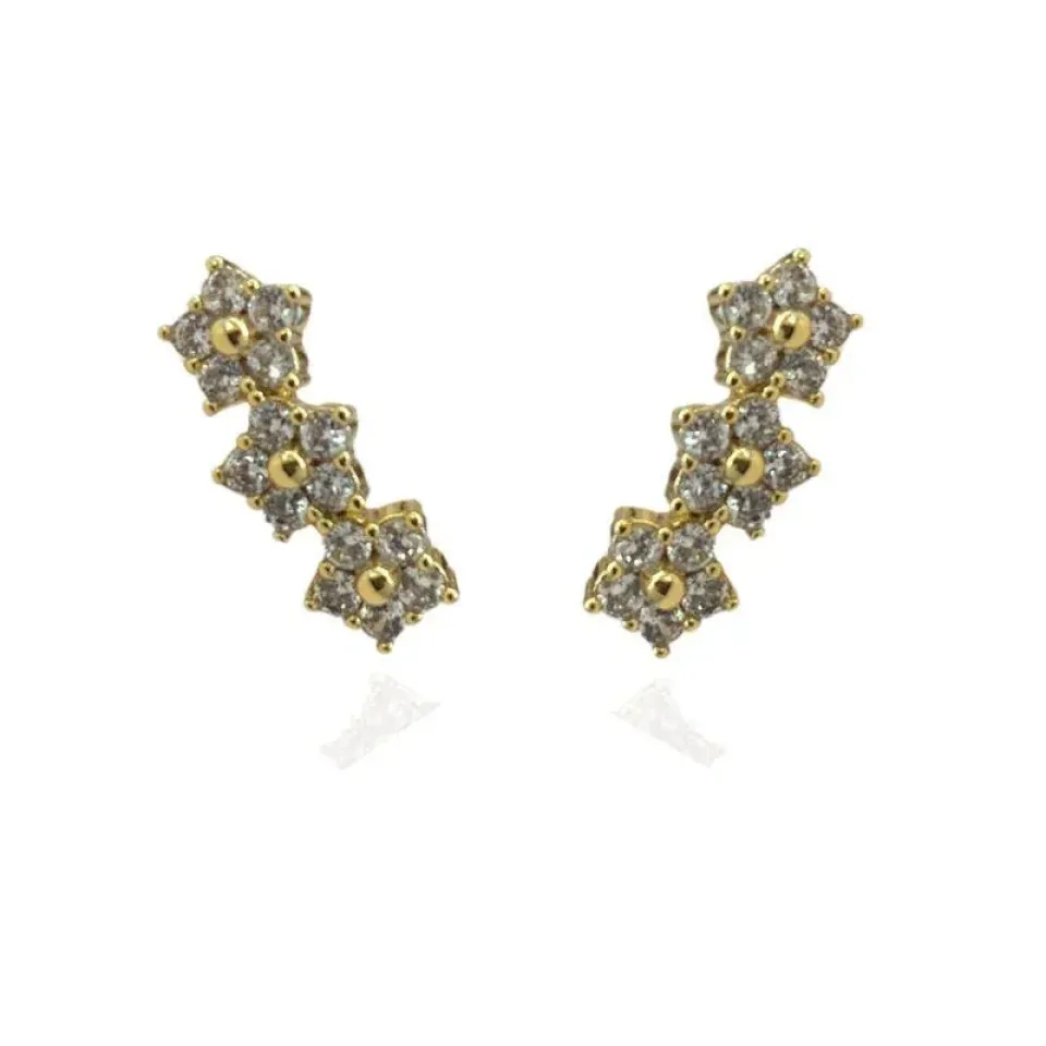 EAR CUFF MINI 3 FLORES CRISTAIS