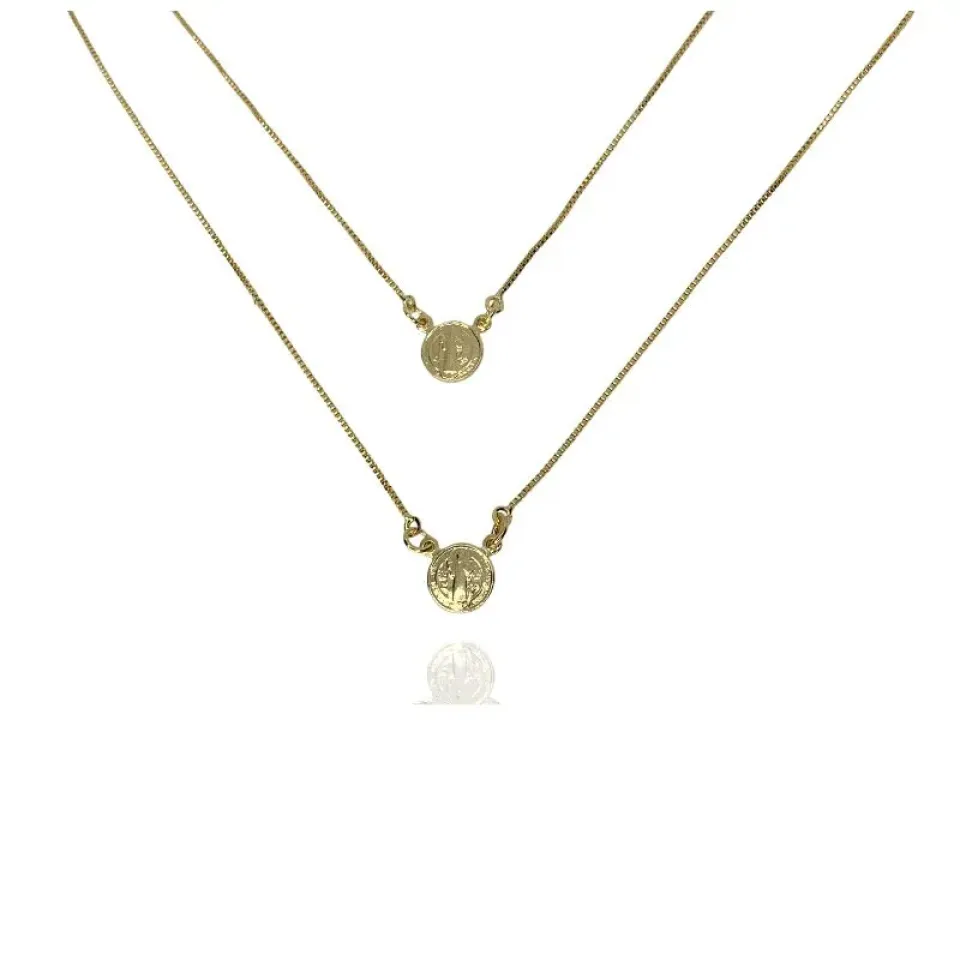 Colar escapulário São Bento medalha pequena corrente veneziana