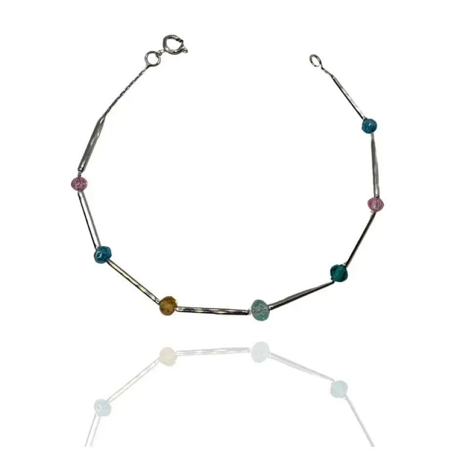 XPulseira canutilhos e cristais coloridos