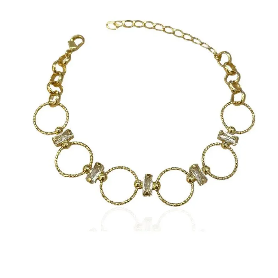 PULSEIRA COM ARGOLAS TRABALHADAS E BAGUETES CRISTAIS