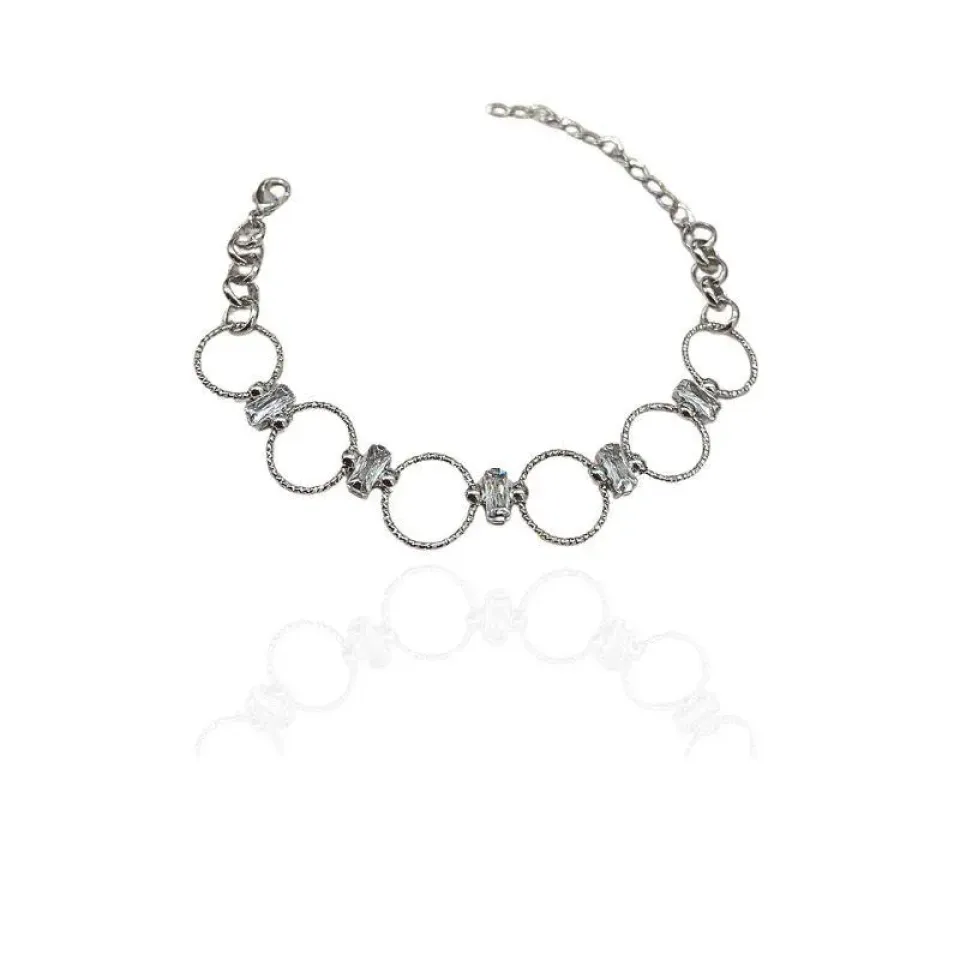 PULSEIRA COM ARGOLAS TRABALHADAS E BAGUETES CRISTAIS