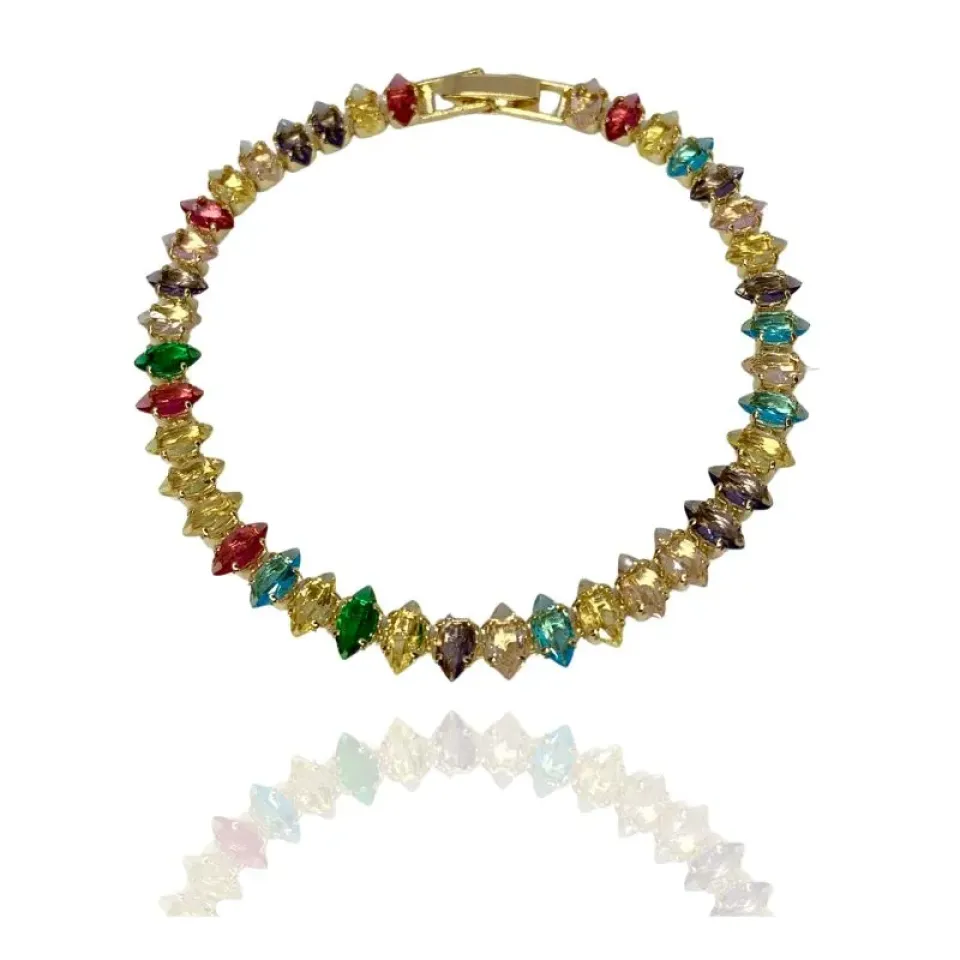 Pulseira navetes coloridos e fecho de joias