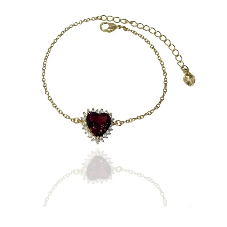 XPulseira coração de zircônia vinho e cravejado em volta com zircônias cristais