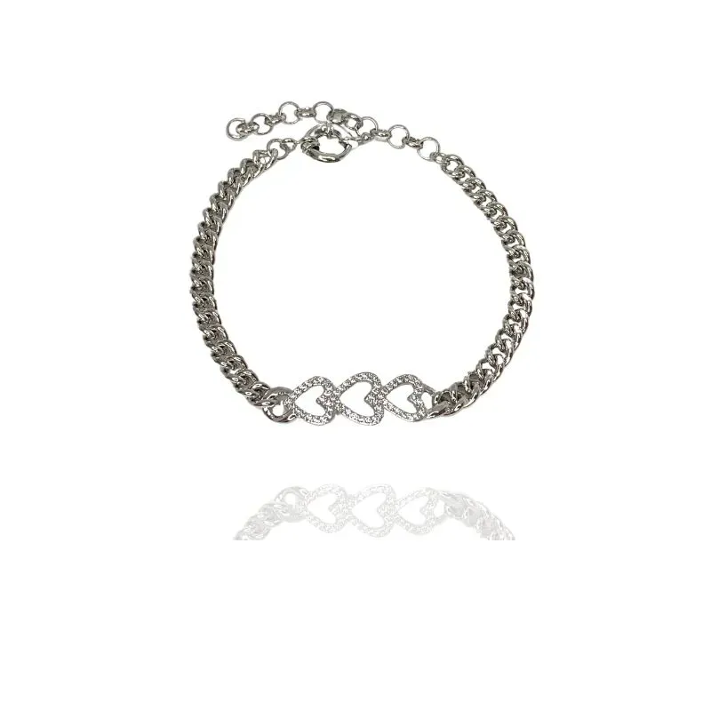 XPulseira corrente grumet com 3 corações vazados e cravejados