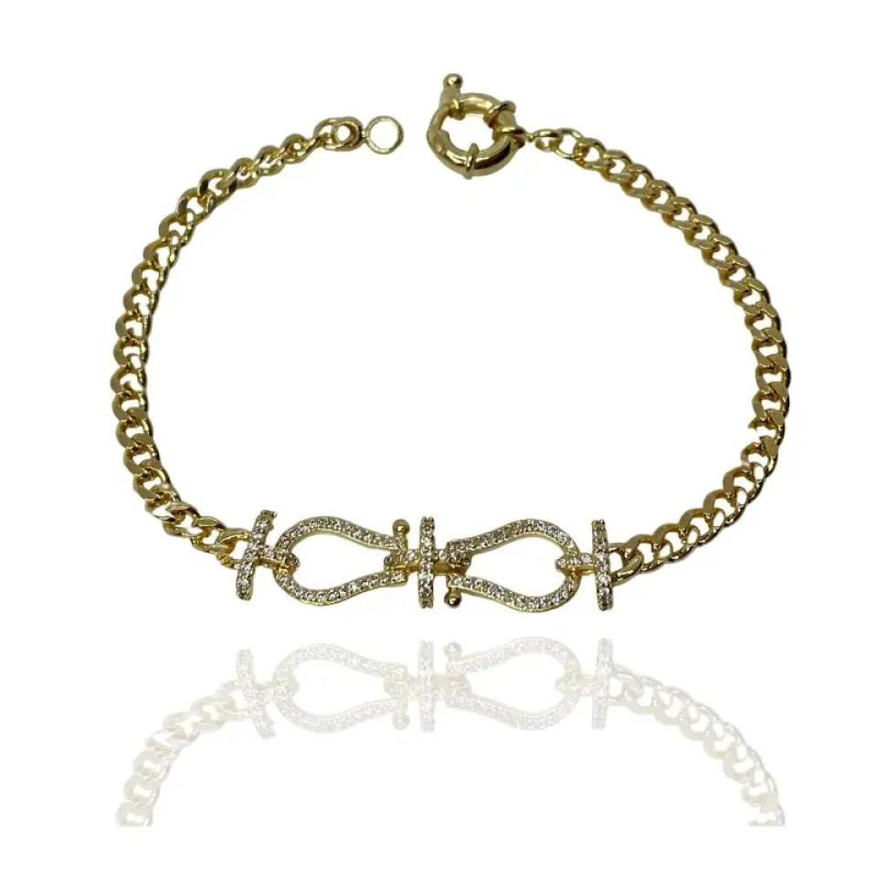 Pulseira elos com cravação em zircônias cristais e fecho boia