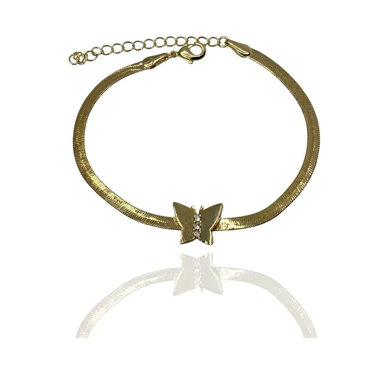 Pulseira filete com borboleta lisa e 3 zircônias cristais