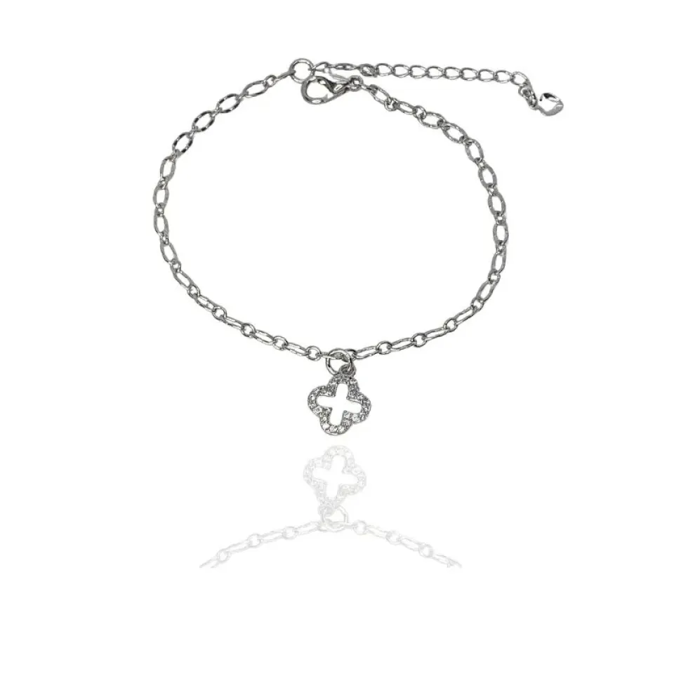 Pulseira fina com pingente de trevo cravejado de zircônias cristais