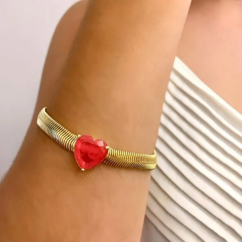 PULSEIRA FIO ALEMÃO GROSSO E CORAÇÃO PEDRA FUSION
