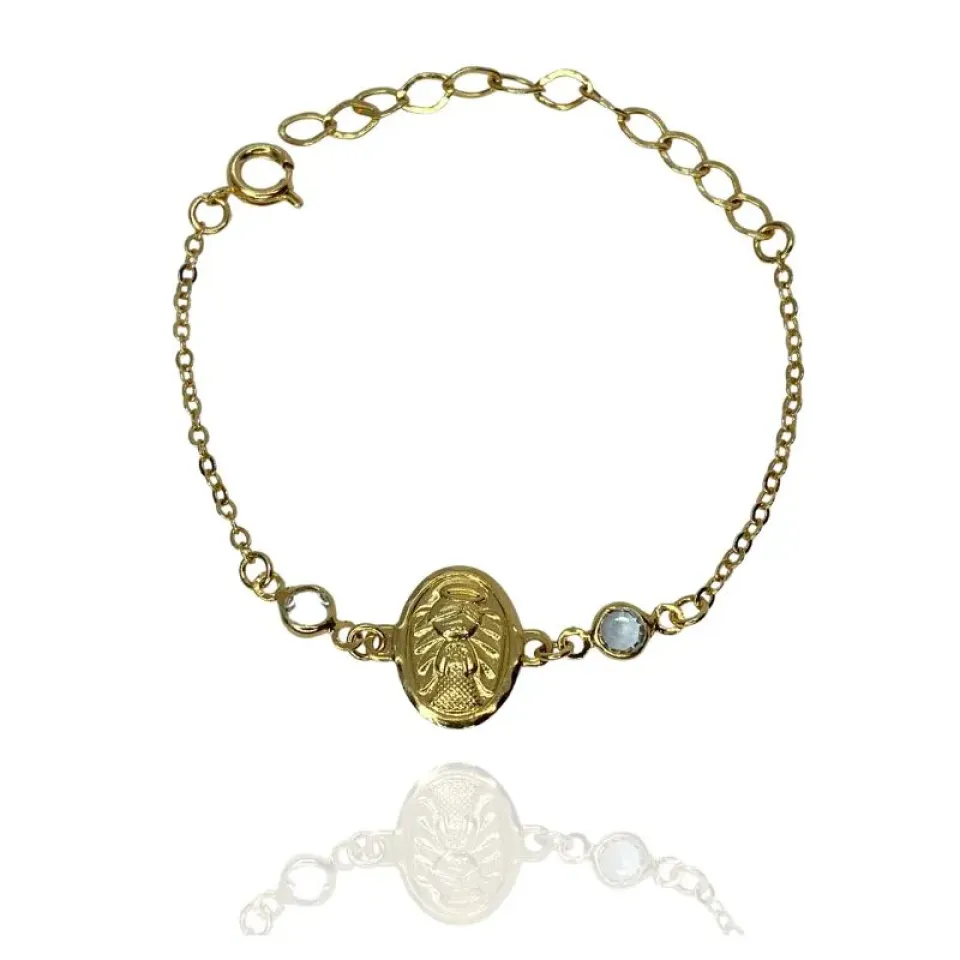 Pulseira infantil anjo da guarda com duas zircônias cristais
