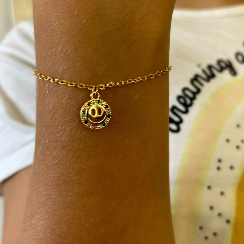 Pulseira infantil smile com zircônias coloridas em volta
