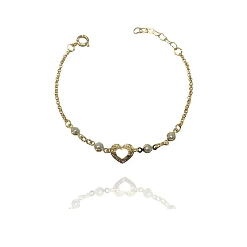 PULSEIRA INFANTIL CORAÇÃO E PÉROLAS