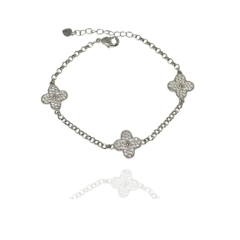 Pulseira inspiração trevo Van Cleef cravejado com zircônias cristais