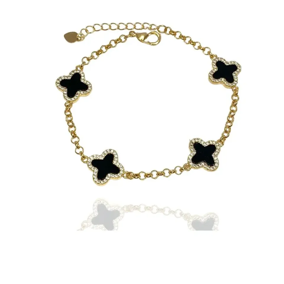 Pulseira inspiração trevo Van Cleef madrepérola preta e cravejado em volta