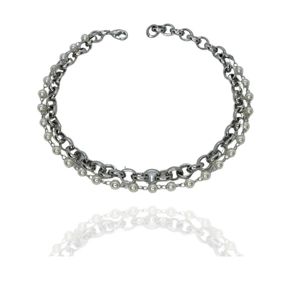 Pulseira dupla corrente e perólas