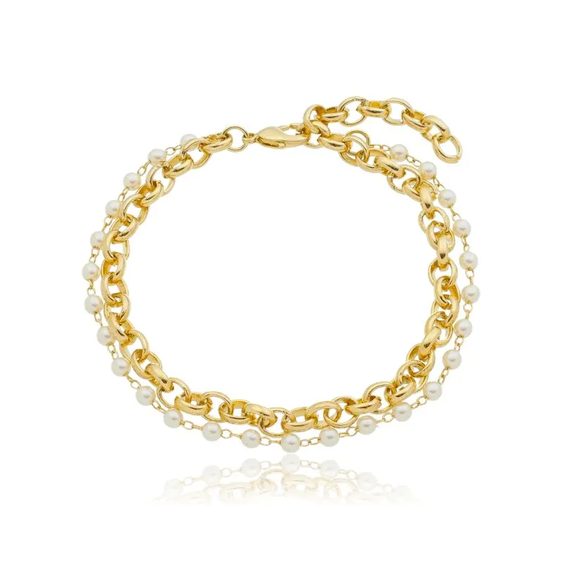 Pulseira dupla elo português e pérolas.