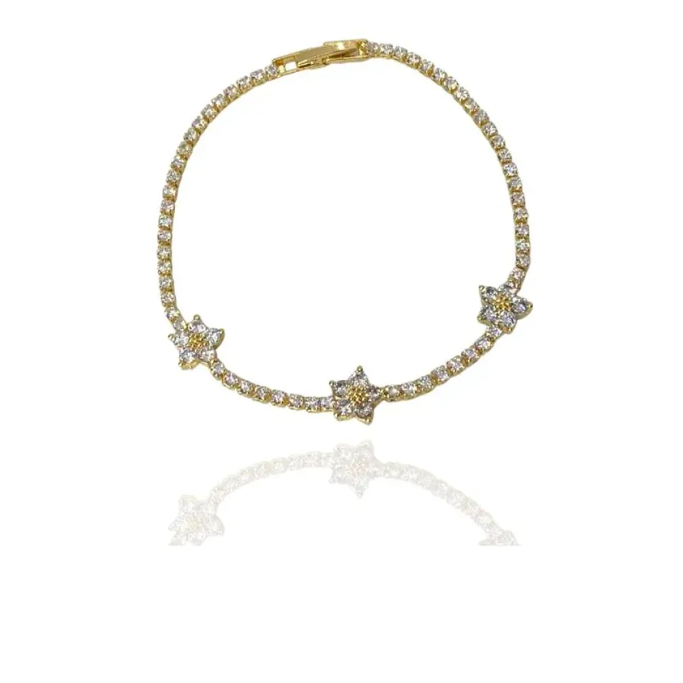 Pulseira riviera e flores cravejadas zircônias cristais