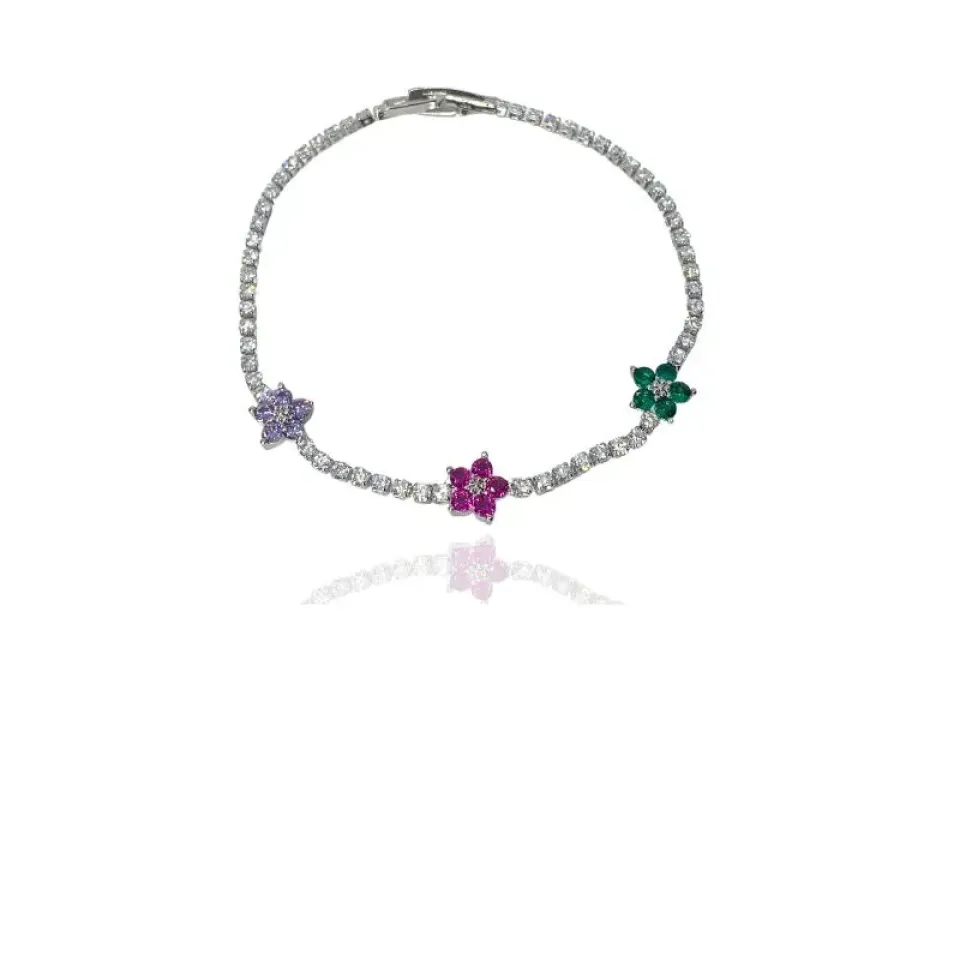 Pulseira riviera cristal e flores cravejadas zircônias coloridas