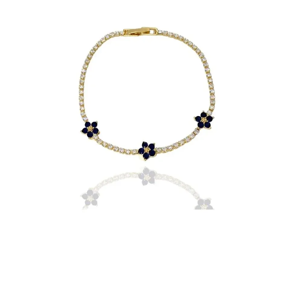 XPulseira riviera cristal e flores cravejadas zircônias azul bic