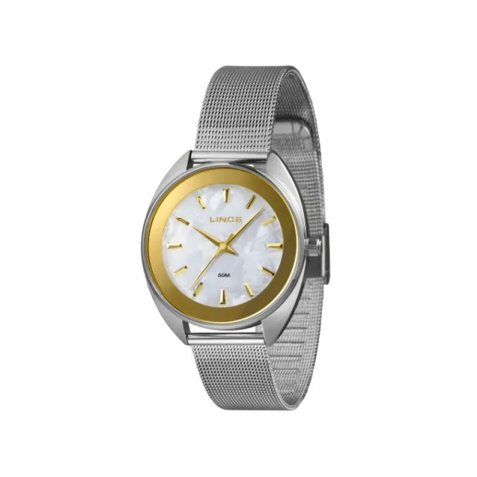 RELÓGIO LINCE B1SX PRATA COM DETALHE DOURADO