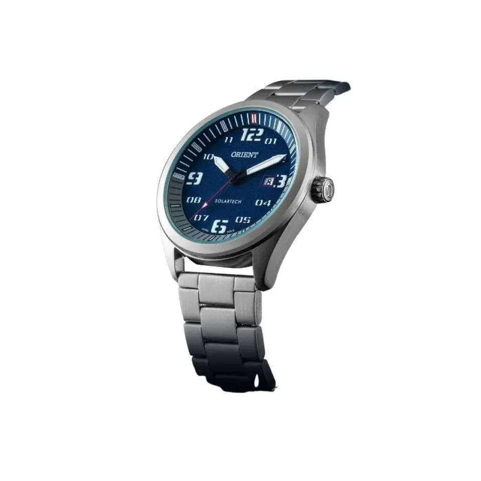 RELÓGIO ORIENT SOLARTECH D2SX PRATA E FUNDO AZUL