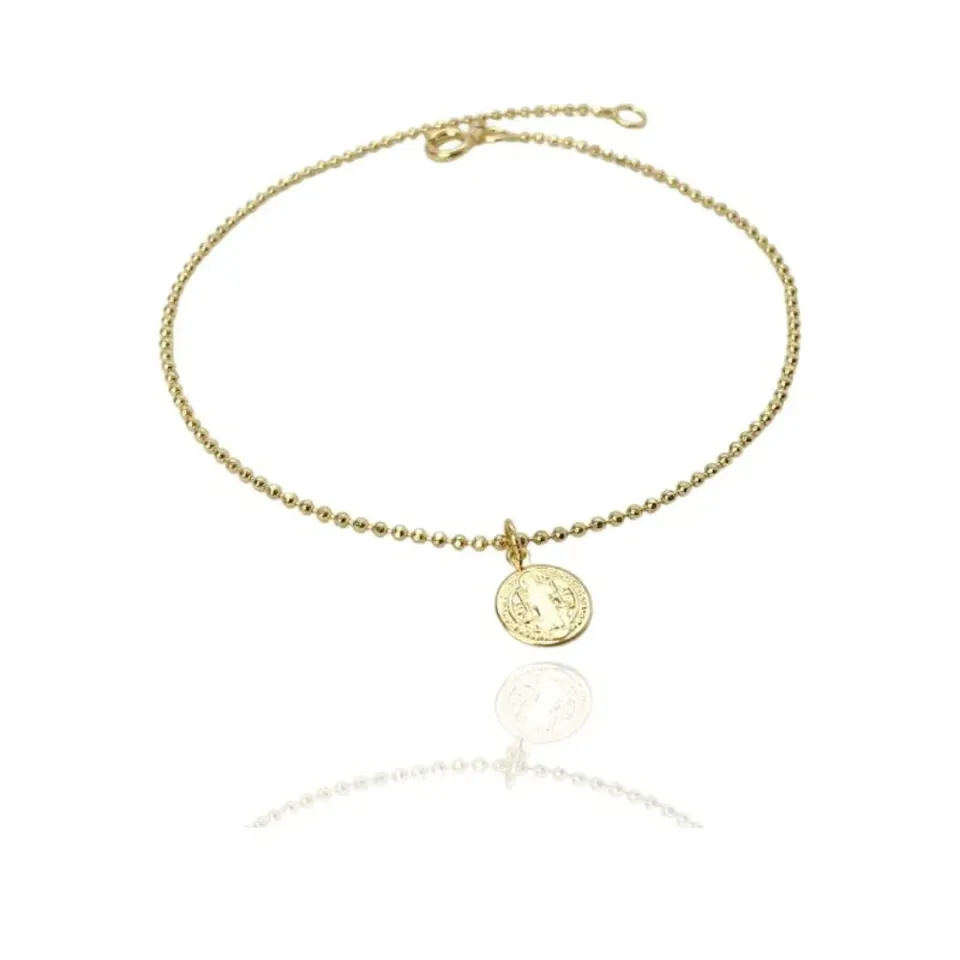 Tornozeleira corrente bolinhas unidas pingente medalha de São Bento