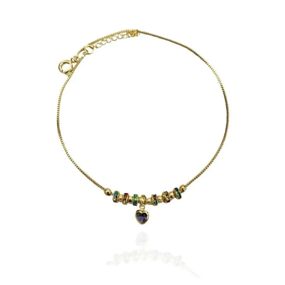 TORNOZELEIRA CORAÇÃO E AROS CRAVEJADOS