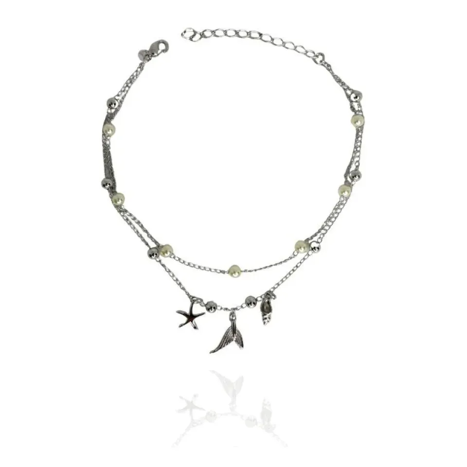 TORNOZELEIRA DUPLA PINGENTES MAR