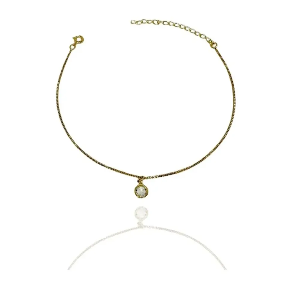 Tornozeleira corrente veneziana com pingente ponto de luz de zircônia cristal