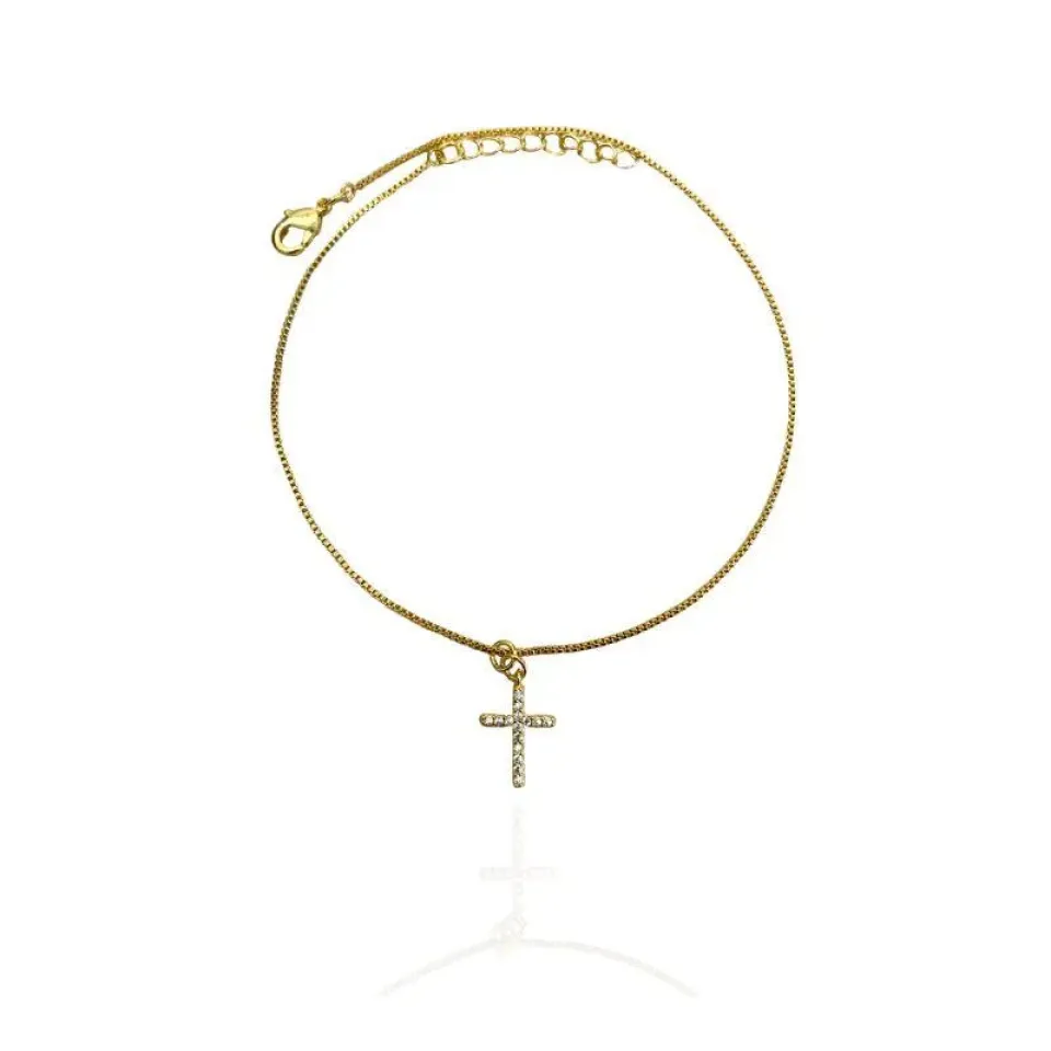 TORNOZELEIRA VENEZIANACOM CRUZ CRAVEJADA CRISTAL