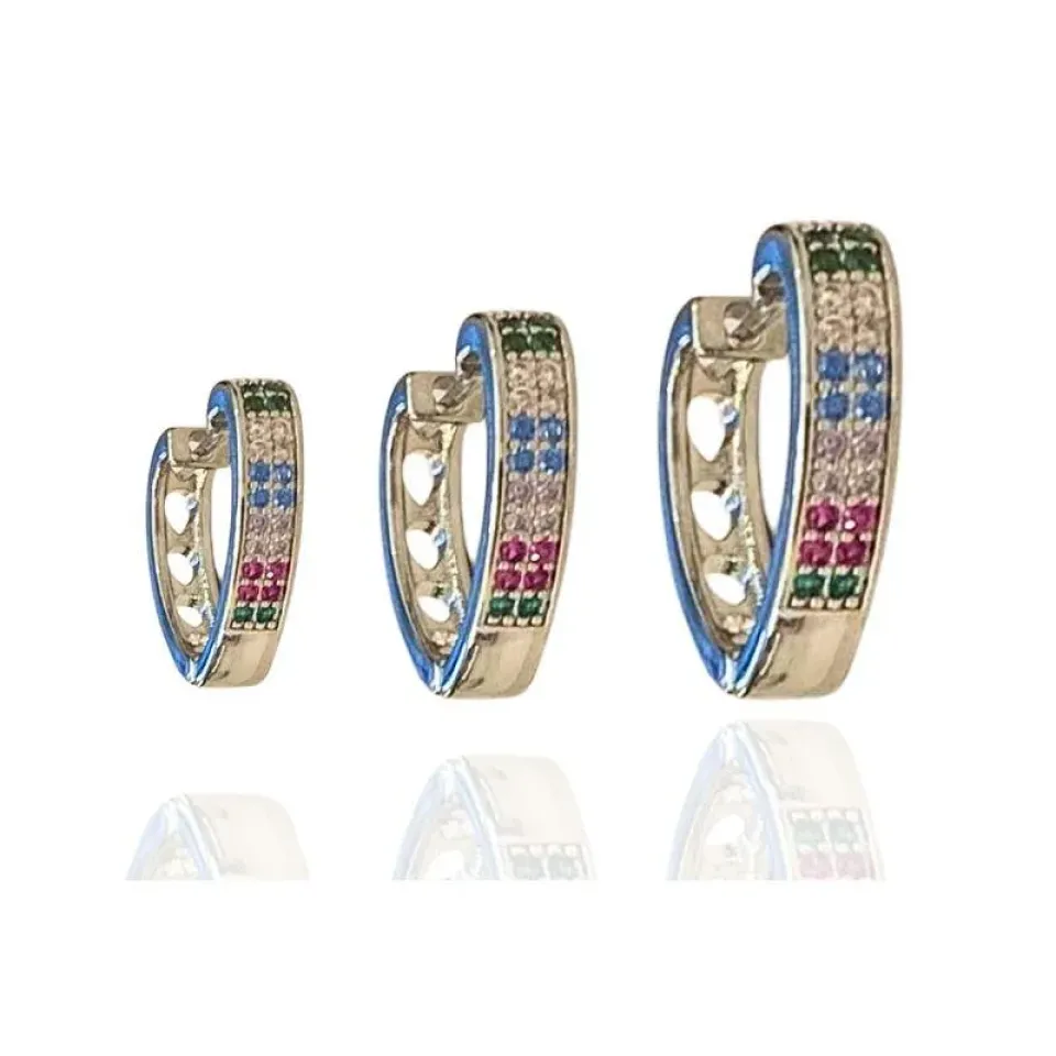XTRIO ARGOLA EM V CRAVEJADA COLORIDA