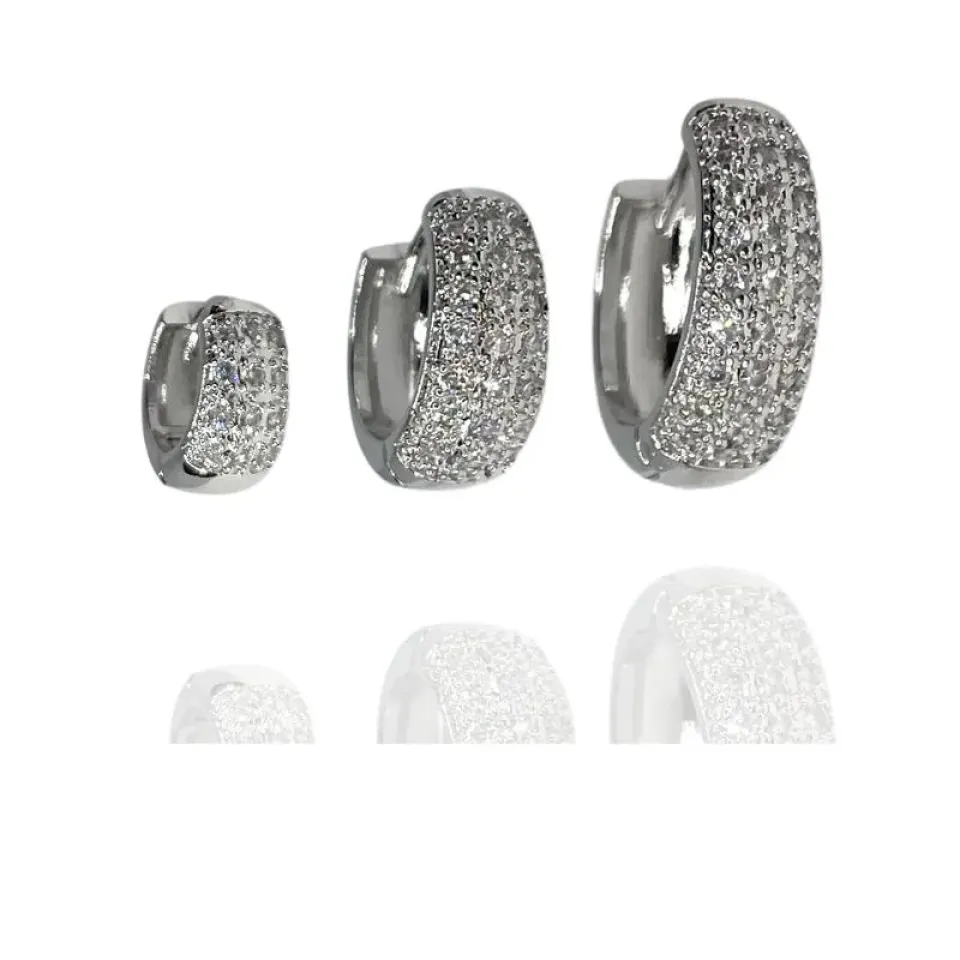 TRIO ARGOLA GROSSA CRAVEJADA CRISTAL