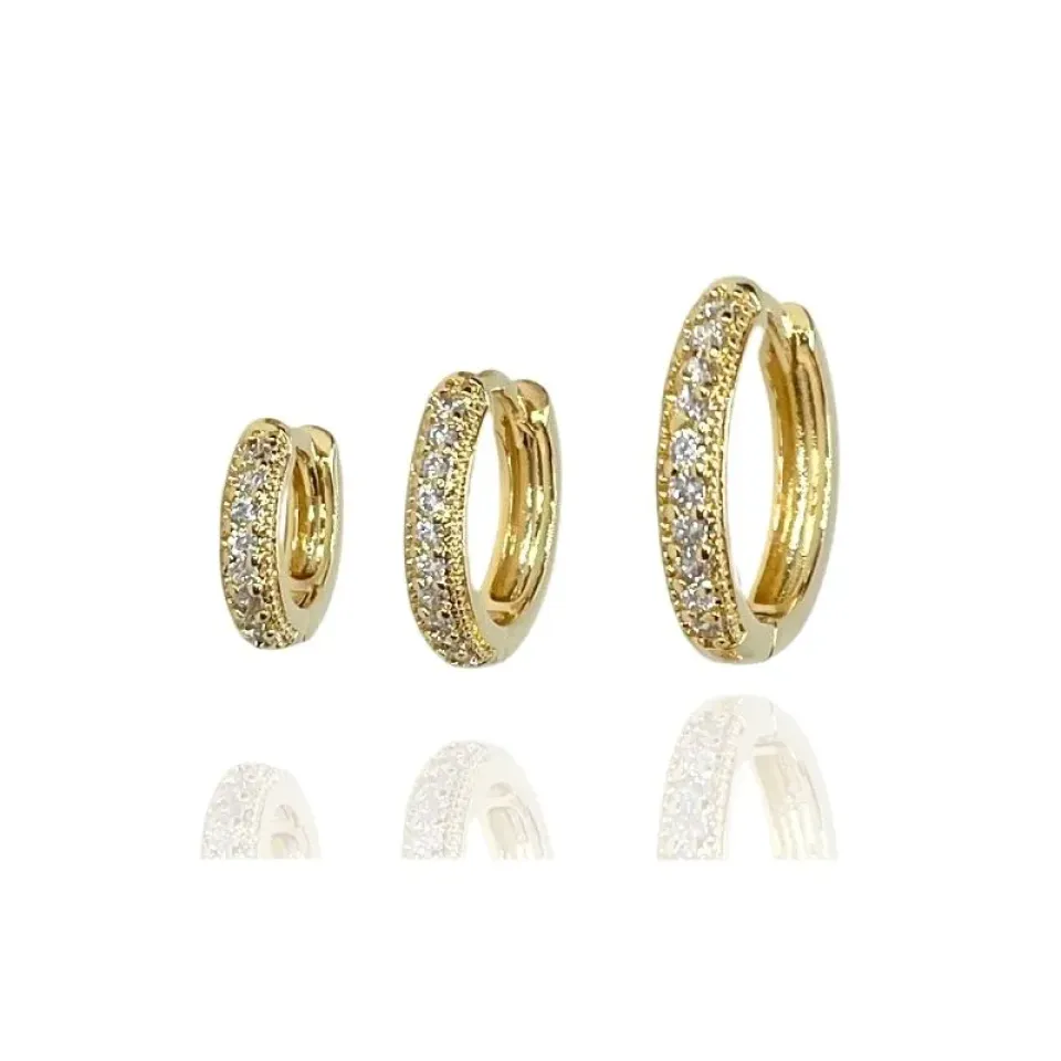 Trio de argolas com 1 fileira de zircônias cristais
