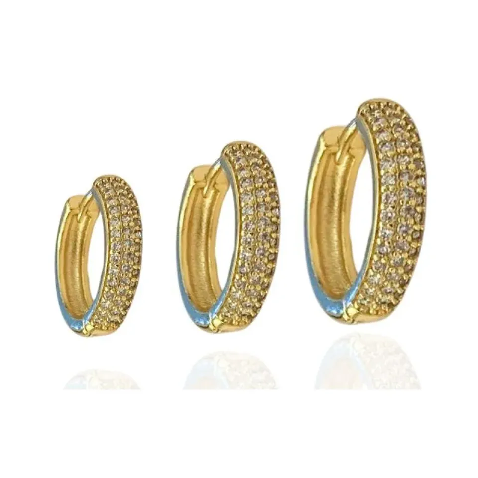 XTRIO DE ARGOLAS 3 FILEIRAS CRAVEJADAS CRISTAIS